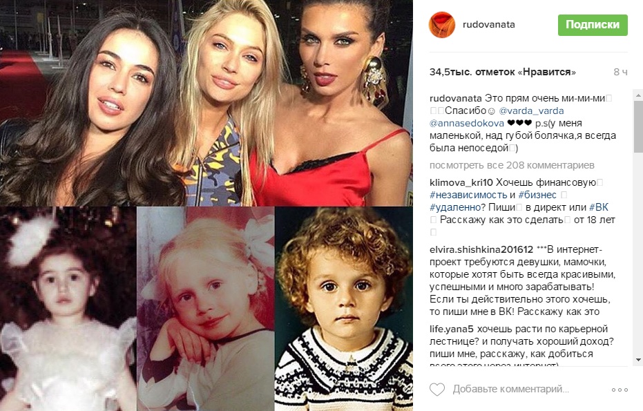Наталья Рудова (33) выложила в Instagram фотографию с подругами, певицей Вардой (31) и Анной Седоковой (33). Под общим снимком – их фото из детства: «Это прям очень ми-ми-ми. P.S. у меня маленькой над губой болячка, я всегда была непоседой», — подписала Наталья.