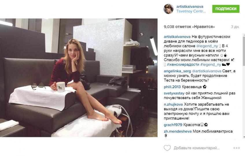 На днях артистка опубликовала в своем Instagram фото, на котором она запечатлена в столичном салоне красоты «Легенда New York». «На футуристическом диване для педикюра в моём любимом салоне. В 4 руки накрасили мне все-все ногти сразу! И чаем вкусным напили. Спасибо моим любимым мастерам!» — подписала снимок Светлана.