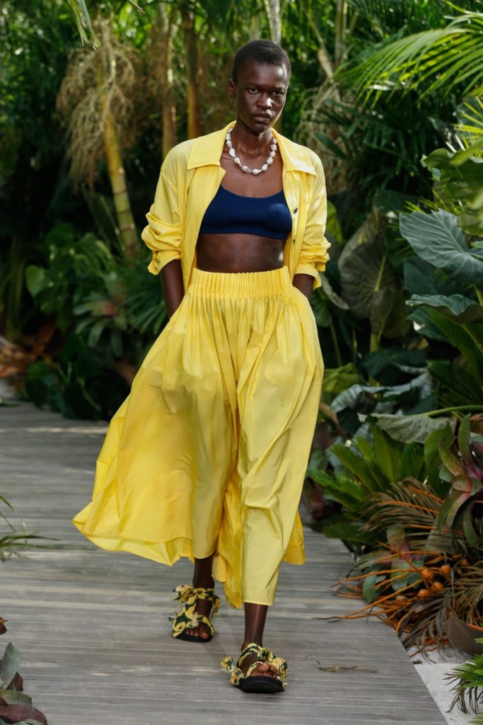 Еще в начале этого года Институт цвета Pantone назвал Illuminating (насыщенный желтый) – одним из главных оттенков сезона. Дизайнеры тут же подхватили тренд, и вот уже в коллекции Versace появляется лимонное платье с выглядывающим черным бра, а на показе Jason Wu модель уверенно идет по подиуме в сигнальном оверсайз костюме.