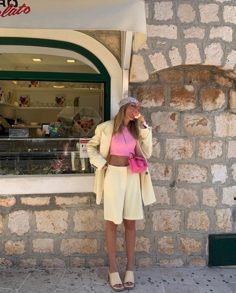 Но если бренды сделали выбор в пользу ярких оттенков, то модные блогеры нашли секрет идеального летнего аутфита в приглушенных тонах. В этом сезоне они предлагают носить их в самых разных сочетаниях: от монохромного образа с рубашкой и бермудами до дуэта бледно-желтых брюк и розового кроп-топа.