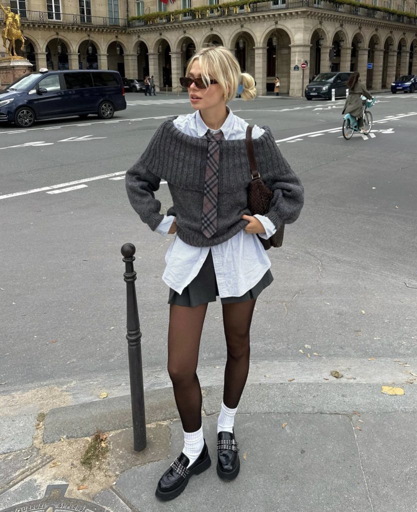 Почему вновь? Потому что такой фасон вернулся к нам прямиком из нулевых. Вспомни хотя бы один из образов Рэйчел Макадамс в фильме «Дрянные девчонки». Там Реджина (экранная героиня актрисы) носила черный лонгслив с открытыми плечами в компании с голубыми джинсами скинни, розовым ремнем люксового бренда и буквенной подвеской. Единственная деталь, которая выдает, что этот образ из нулевых, – голубые лямки от бюстгальтера.