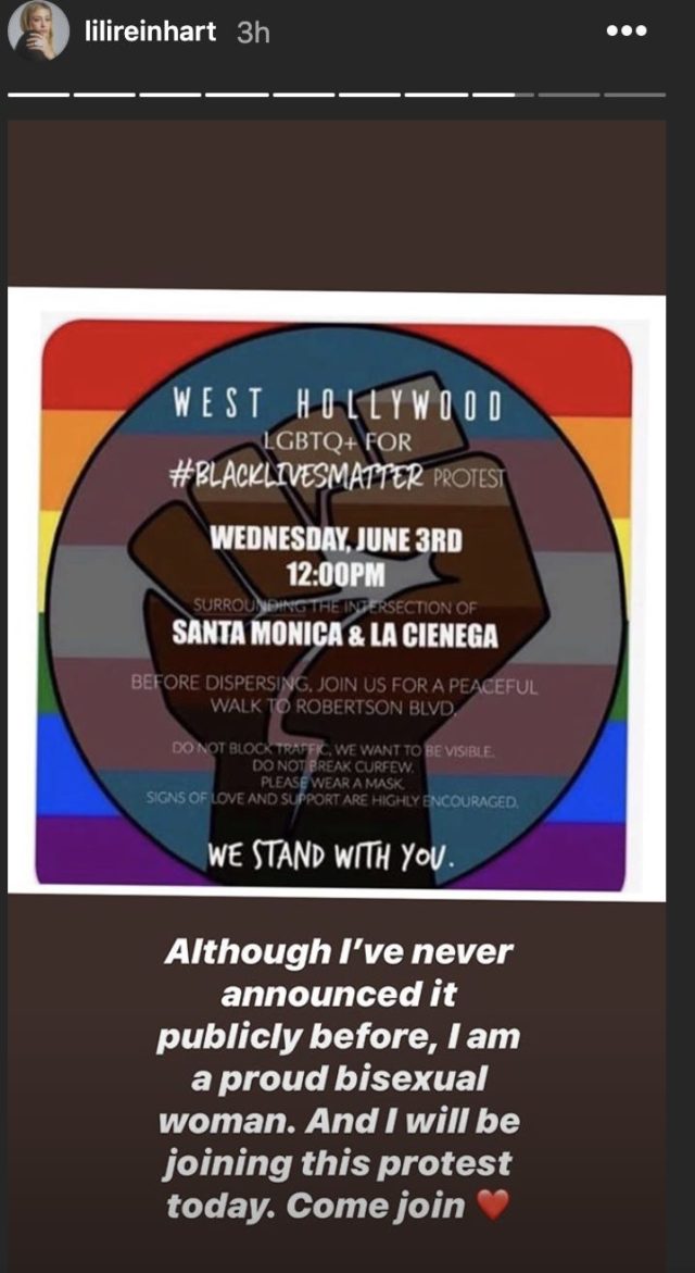 Лили Рейнхарт на фоне новостей о расставании сделала откровенное признание на своей странице в Instagram. 23-летняя актриса впервые рассказала о своей бисексуальности, присоединившись к протестам против ущемления прав ЛГБТ-сообщества.