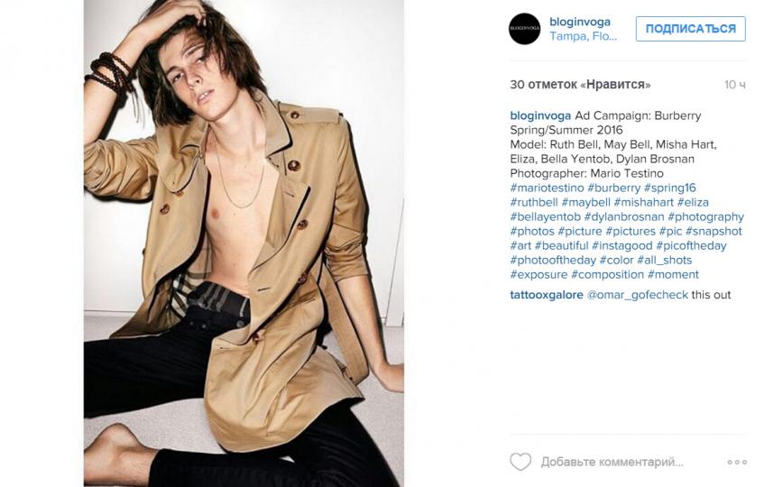 Не так давно в сети появилась новая рекламная кампания новой коллекции весна-лето 2016 от Burberry, в которой и снялся юноша. На снимках Дилан был похож на настоящую рок-звезду. Дилан появился перед объективом фотографа Марио Тестино (61) в бежевом тренче и черных брюках.