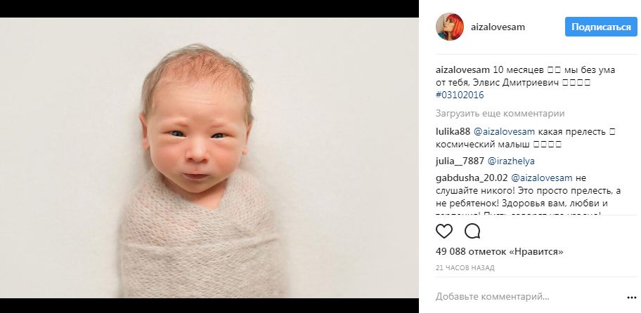 Вчера Айза Анохина (32) поделилась радостным событием – ее младшему сыну Элвису исполнилось 10 месяцев – и выложила два его фото в свой Instagram: одно через месяц после родов, а второе – совсем недавнее. Поклонники бизнесвумен, конечно, расхвалили малыша, но нашлись и недоброжелатели: они заявили, что Элвис «страшный».
