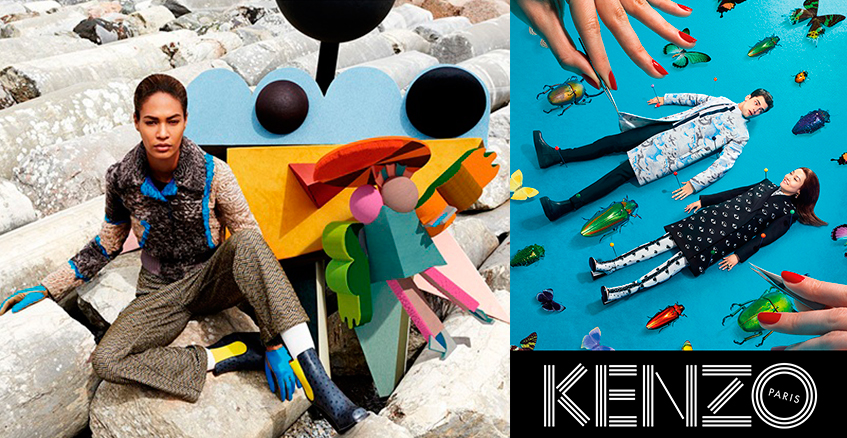 Джоан Смоллс в рекламной кампании Missoni, 2014 г.; рекламная кампанияKenzo, 2013/14 г.