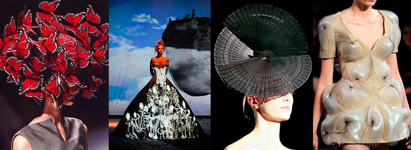 Alexander McQueen, 2008 г.; Franck Sorbier, 2012 г.; Giorgio Armani, 2011 г.; Iris Van Herpen, 2012 г.