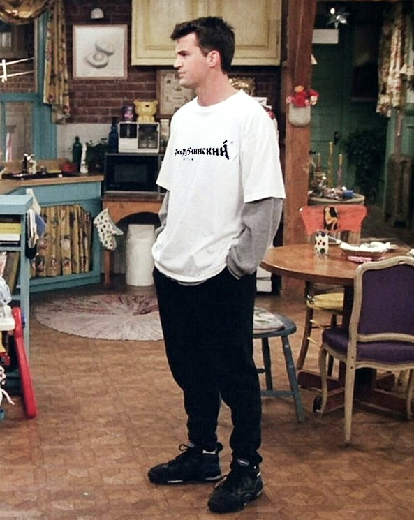 Мы считаем, что Чендлер — родоначальник тренда на футболку поверх лонгслива. Кстати, советуем использовать этот прием в новом сезоне.