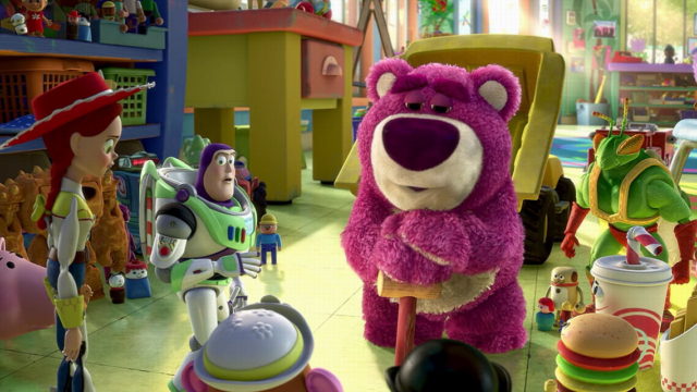Энди отдал свои старые игрушки в детский сад. Казалось бы, «Солнышко» — просто рай. Но на деле общество там делится на тварей дрожащих и право имеющих. Бедные игрушки оказываются под гнетом медведя Лотцо. В мультике показаны все аспекты диктатуры: под громкими призывами оценить райское местечко мы в итоге видим харизматичного лидера, разделение на социальные классы, промывание мозгов (бедный Базз Лайтер), принудительный труд и определенную идеологию.