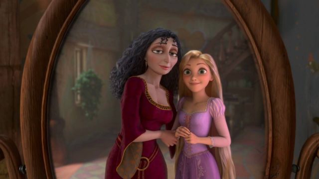 Мать Рапунцель (точнее, ведьма, которая украла девочку у родителей) делает все, чтобы опустить самооценку Рапунцель ниже плинтуса: она смеется над ее мечтами, ставит под сомнение тот факт, что она может кому-то понравиться, высмеивает внешность и постоянно заставляет девочку чувствовать себя виноватой. Более того, вечно говорит, что Рапунцель не сможет за себя постоять, вызывая эмоциональную зависимость.
