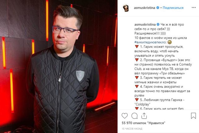 Кристина Асмус (30) своих подписчиков в Instagram любит. Актриса даже часто делится с фолловерами фактами о себе под хэштегами #трушныйинстапост и #википедиювпекло. А недавно рассказала и про своего супруга Гарика Харламова (38).