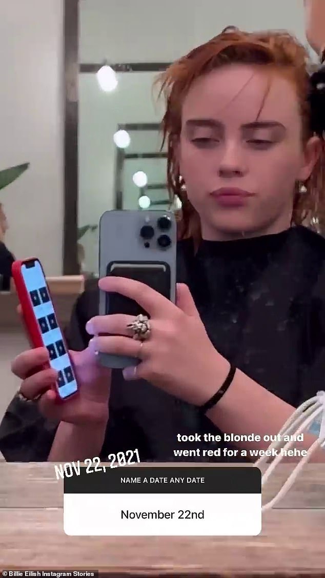 Накануне она еще больше шокировала фанатов. Билли Айлиш в своем Instagram подводила своего рода итоги года. Подписчики писали ей рандомную дату, а Билли публиковала снимок, сделанный в этот день. Так мы и узнали, что перед тем, как вернуться к своему темному цвету волос, Айлиш неделю ходила рыжей. И никому не говорила.