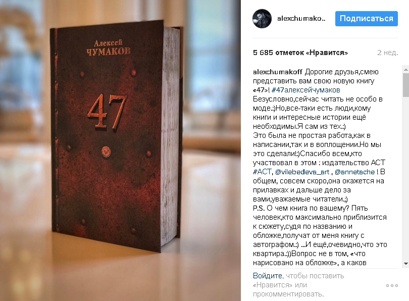 Сам Алексей представил свой роман, выложив фотографию обложки в Instagram: