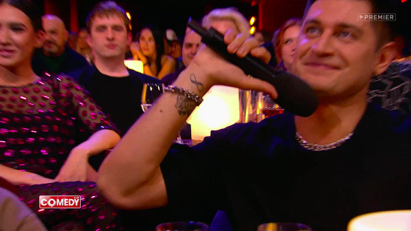 «У нас сразу вопрос. Оля не ревнует тебя к руке?» — начал подшучивать над Давой Гарик Харламов. А затем в разговор вступил Павел Воля, отметив творческие успехи исполнителя: «Дава записывает активно в последнее время лирические треки. На самом деле ты крут. Полгода назад тебя никто вообще не знал. Молодец — Бузова».