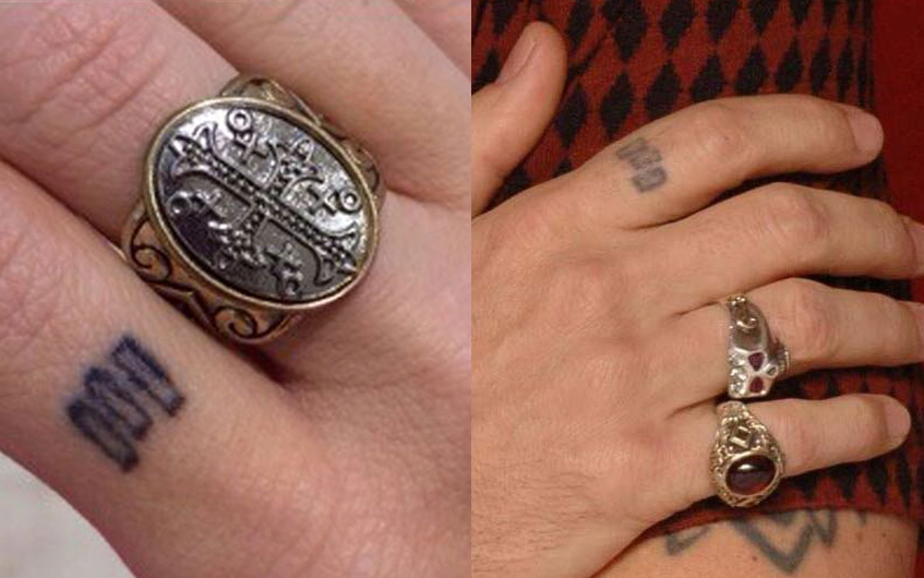 На указательном пальце Джонни Деппа уже много лет красуются три прямоугольника. Сам актер признался, что он все время рисовал их во время разговоров по телефону и на школьных уроках. По его словам, эти символы имеют очень глубокое значение, но сам он о нем не в курсе.