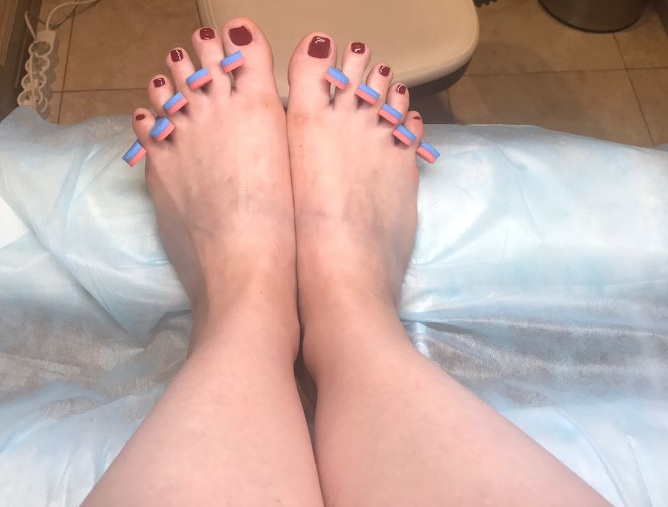 «Тестировать педикюр я отправилась в уютный салон Pigment Club. Он совсем небольшой, но тут очень светло и чисто! Мой мастер быстро сделала мне классический педикюр с легкой обработкой стоп. Приятно, что во время процедуры она рассказывала о том, как правильно ухаживать за ногтями и что важно делать, чтобы не было грибка и прочих неприятностей. Прошло уже две недели и, несмотря на то что я попросила сделать покрытие обычным лаком, педикюр до сих пор выглядит отлично, и лак совсем не стерся».