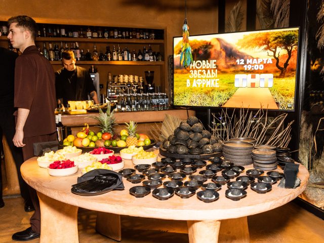 Но поражает даже не столько это, сколько хорошо подобранное заведение для мероприятия, которое идеально вписывалось в концепцию нового проекта ТНТ. Дело в том, что вечеринка проходила в столичном ресторане, вдохновленном первобытной кухней, где блюда готовятся исключительно на открытом огне или в дровяной печи, а десерты выполнены то ли в виде угля, то ли в виде земли. Но как бы не пугал его визуал, это вкусно (нами оценено). Поэтому телеканалу ставим 5 с плюсом, хоть и над Гест-листом еще надо бы поработать.