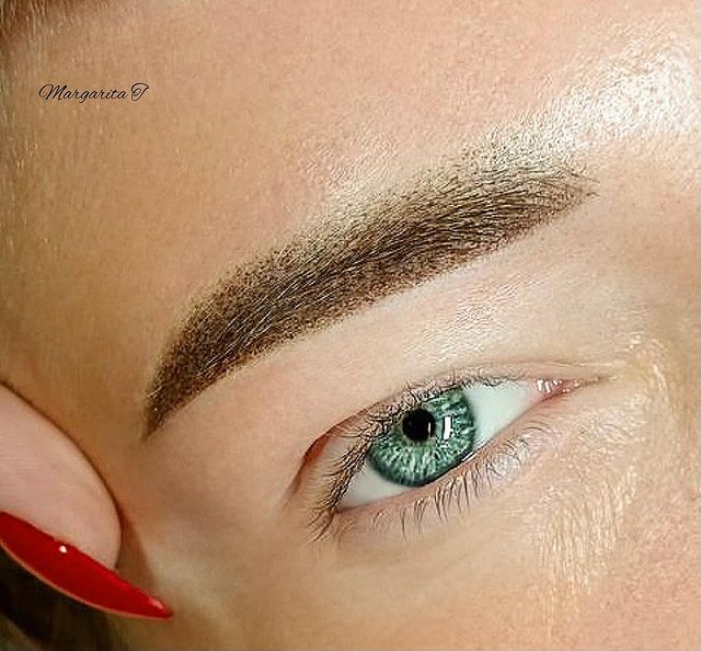 Однако аппаратный татуаж — также достаточно сложная вещь, которую надо долго тренировать и годами «набивать руки». Естественно, мало кто заморачивался по этому поводу — девушки буквально за пару дней обучались тому, как царапать брови иглой-«единичкой». На самом деле, если делать растушевку «единицей» на большой скорости, будут оставаться точки. И эти точки (которые также называют «напылением», «нано-напылением» или «пудровой техникой») по сути являются некачественной растушевкой. Вот чем по факту являлась «архитектура бровей». При этом, конечно же, не все клиенты оставались довольными. Многие начали искать альтернативы — такое исполнение, при котором татуаж не будет очевиден.