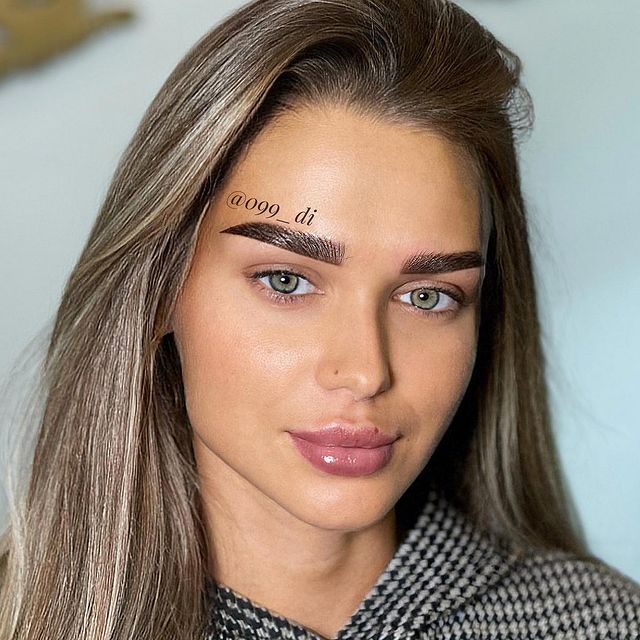Параллельно с микроблейдингом к нам пришла так называемая архитектура бровей, — и появились так называемые бровисты. Отсюда пошли вот те самые «легендарные» толстые брови, нарисованные ниткой и расчерченные по ровным линейкам.