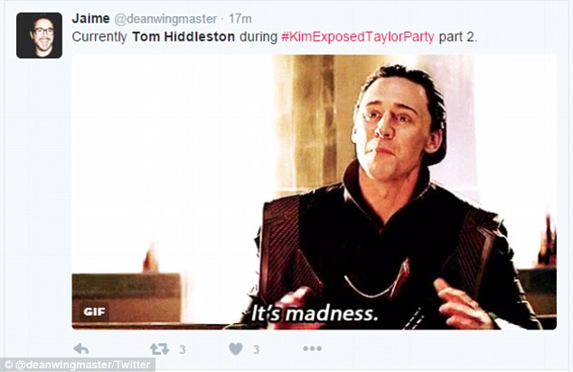 А теперь, внимание, вопрос. При чем тут Том Хиддлстон? А при том, что, закрутив роман с Тейлор, актер стал звездой таблоидов, над которой теперь потишается интернет. «Мне нравится Том Хиддлстон. Но сейчас он выглядит как маленькая бескрылая птичка, попавшая в серьезную заваруху», «Том на такое не подписывался. Попал парень и теперь как будто расхлебывает богатое прошлое своей подружки», «Том такого не заслуживает. Все, что он хочет, — это читать Шекспира и помогать детям», «Он, наверное, сходит с ума, когда слышит об этих разборках с Ким», «Все, что я хочу сделать, когда слышу обо всем этом, — это оградить Тома от этого», — пишут поклонники актера в социальных сетях.