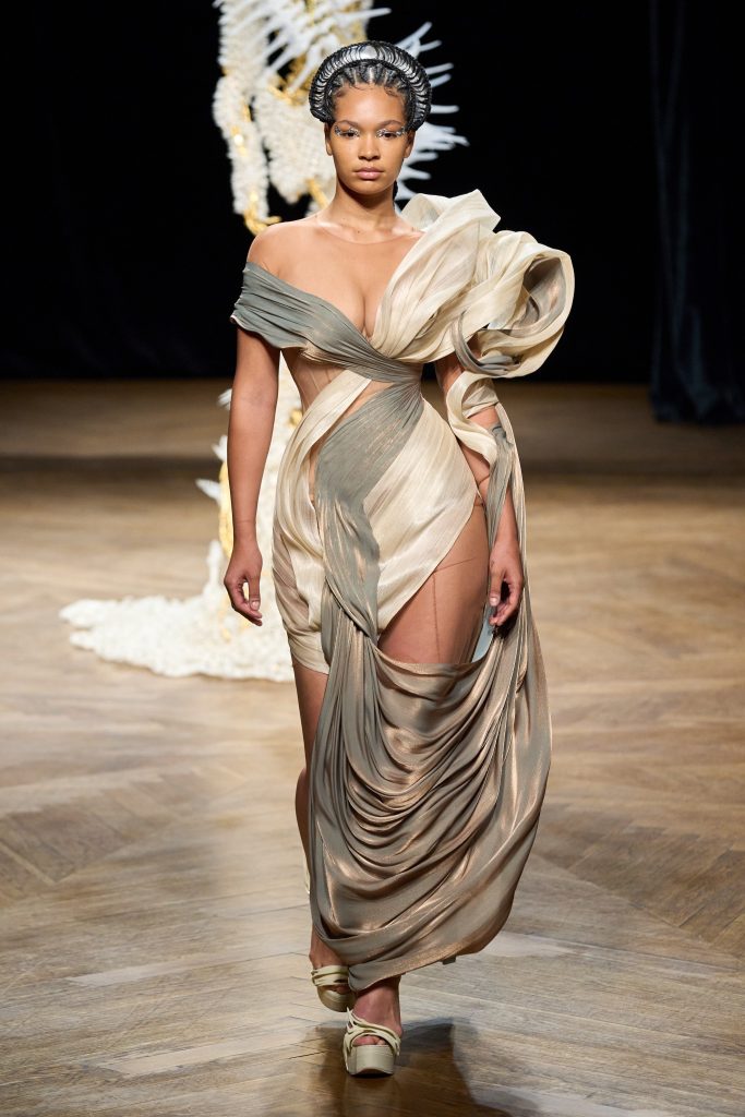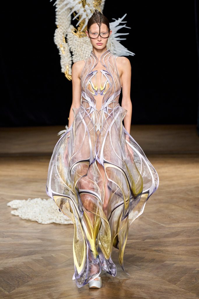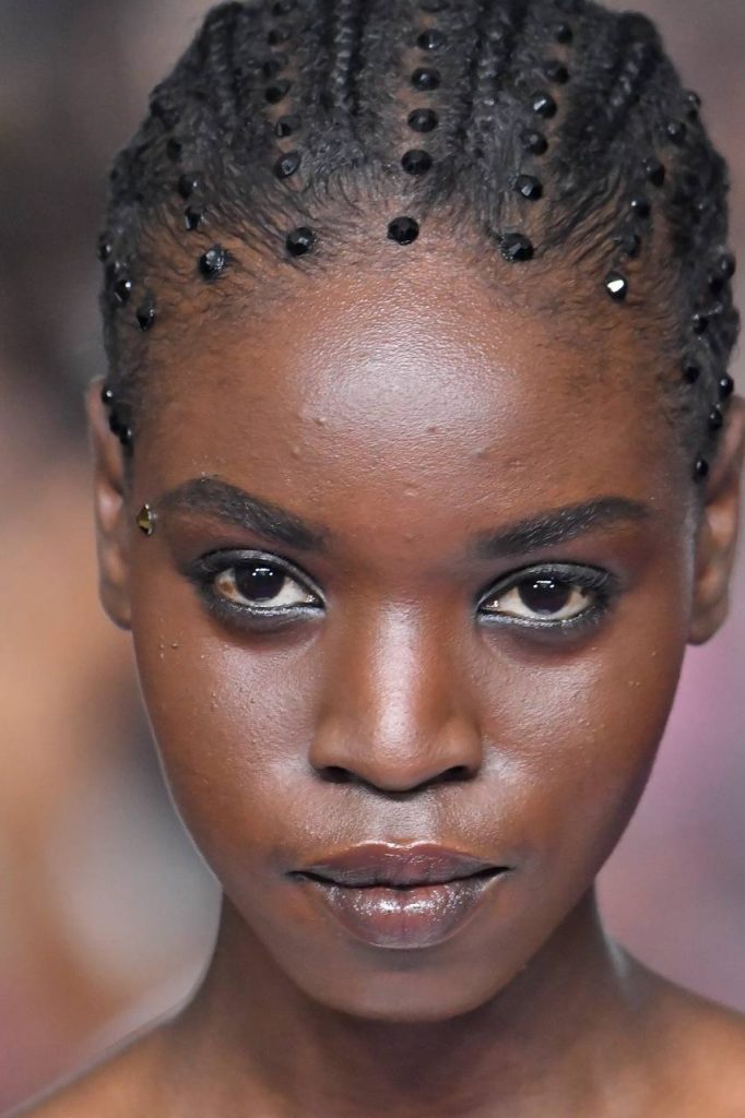 Дизайнеры Chanel, Armani Prive, Iris van Herpen и не только сделали ставку на тонкие косички, обрамляющие кожу головы под разными углами – как горизонтально, так и вертикально. Причем помимо оммажей классическим этническим элементам, мы видели и другие, более «минималистичные» вариации – внимание на прически с показа Elie Saab. Настоящую волю фантазии дала нидерландский модельер Ирис ван Херпен: стилисты по волосам, работавшие на показе, решили пойти ва-банк, сделав из косичек своеобразные гребни и переместив элементы на среднюю треть лица и уши моделей.