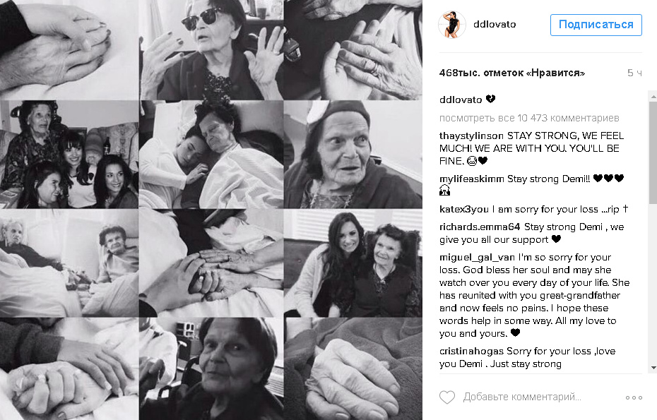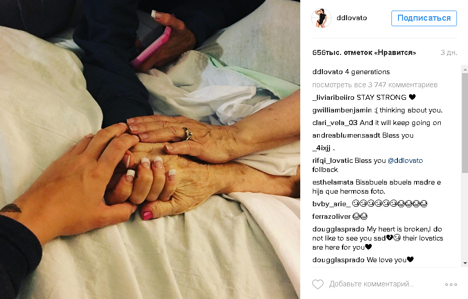 В последнее время в профиле девушки часто появлялись фотографии из больницы, где долгое время находилась ее бабушка. Деми не раз говорила, что она заменяет ей практически всю семью.