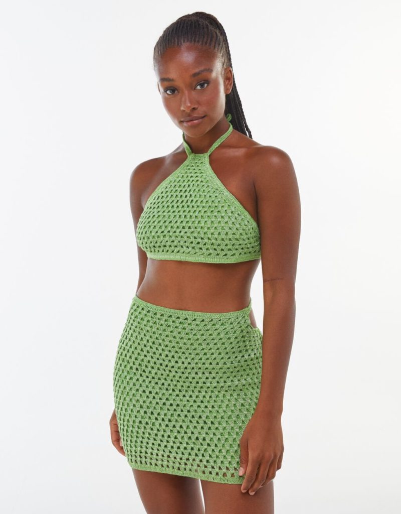 Если в прошлом сезоне ты уже успела примерить футболку тай-дай и колье из бисера, а этим летом выложила в Instagram кольцо в игрушечном стиле, как у Дуа Липы, самое время попробовать еще один тренд. Техника кроше, которую дизайнеры адаптировали под платья и сумки, перешла на кроп-топы и сразу же стала любимой вещью почти всех инфлюенсеров.