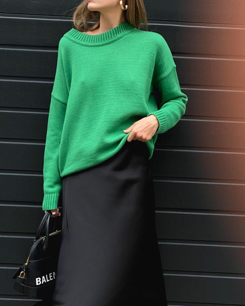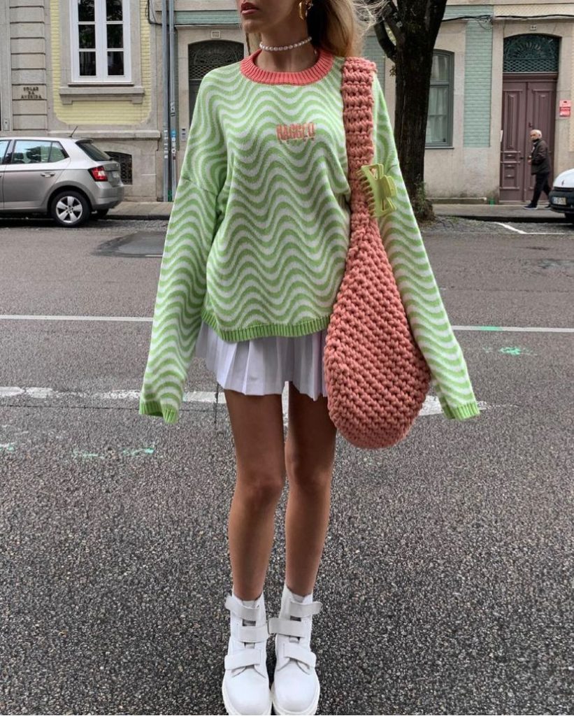 Стоило ожидать, что цвет быстро завоюет внимание модных инфлюенсеров. И спустя пару месяцев зеленый буквально заполнил весь Instagram. Но, как известно, fashion-блогеры не только следуют трендам, они и задают их. Поэтому it-girls Instagram решили соединить палитру с уютным трикотажем. Так, родился еще один тренд — зеленый свитер.