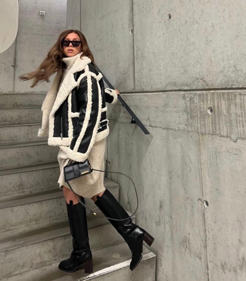 В этом сезоне fashion-блогеры все чаще выбирают черные или коричневые дубленки, сочетая их с широкими джинсами, эко-кожей, трикотажем и высокими сапогами.