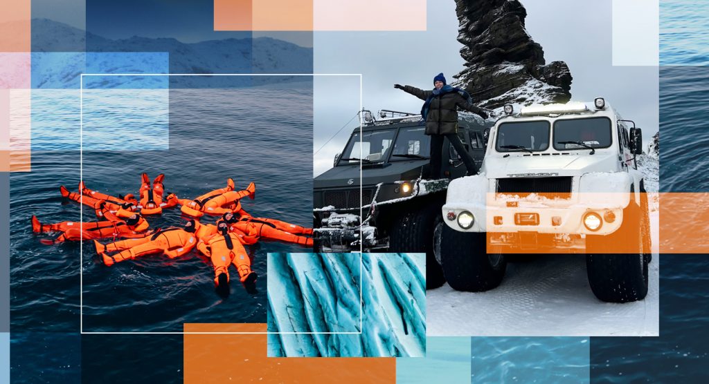 Арктика – это не только созерцание, но и драйв. Здесь можно попробовать флоатинг в холодном море в специальном гидротермокостюме, отправиться на снегоходное сафари, прокатиться на вездеходах и встретить стаю северных оленей.