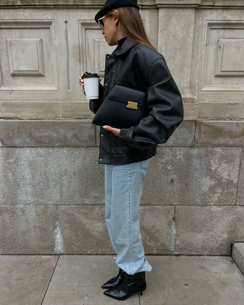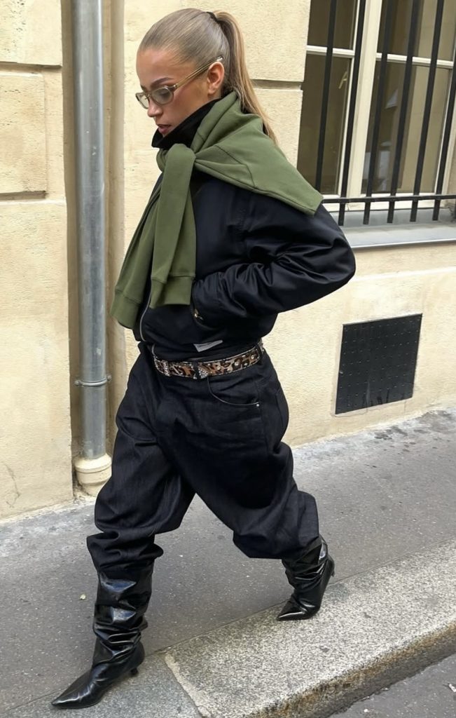 Если предыдущая модель кажется слишком грубой, тебе точно стоит обратить внимание на сапоги kitten-heel. Маленький каблук, аккуратный носок и вытянутый силуэт делают такую обувь универсальной: под офисное пальто, вечерние мини или повседневный гардероб. Героини стритстайла часто носят сапоги в сочетании с брюками или джинсами-скинни, тонкими кардиганами или рубашки. Смотрится на 11 из 10.