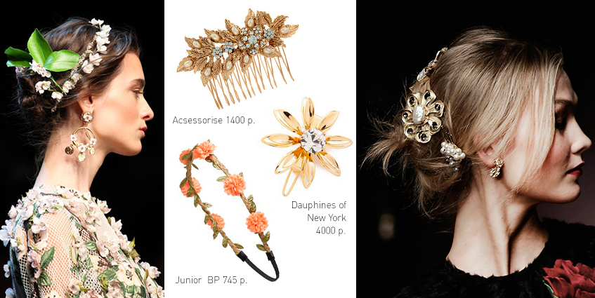 Модный штрих в виде заколок, металлических ободков и приколок, невидимок с цветами и прочих украшений для волос дополнит любой образ.