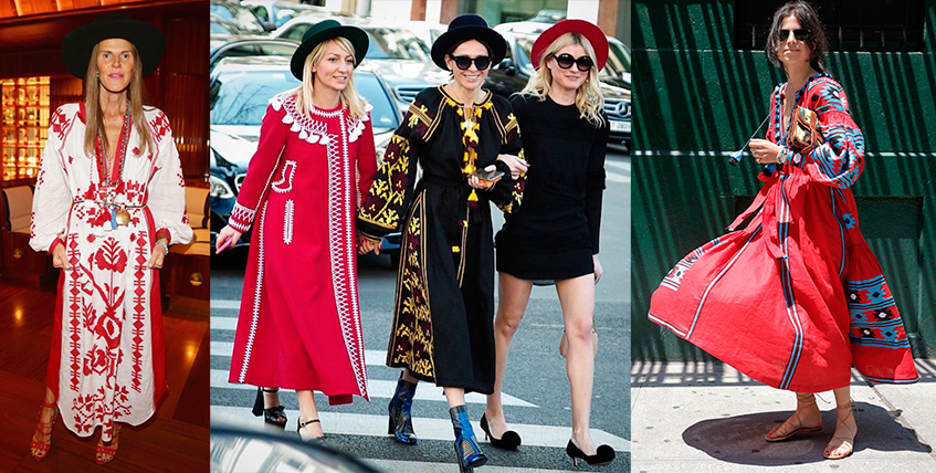 Вышиванки от дизайнера Vita Kin заполонили модные улицы и странички Instagram. Традиционная украинская вышиванка на современный манер стала главным объектом желаний любой модницы. Из них буквально не вылезают Анна Делло Руссо (53), Леандра Медин (26), Джованна Батталья (36), Екатерина Мухина (34) и многие другие.
