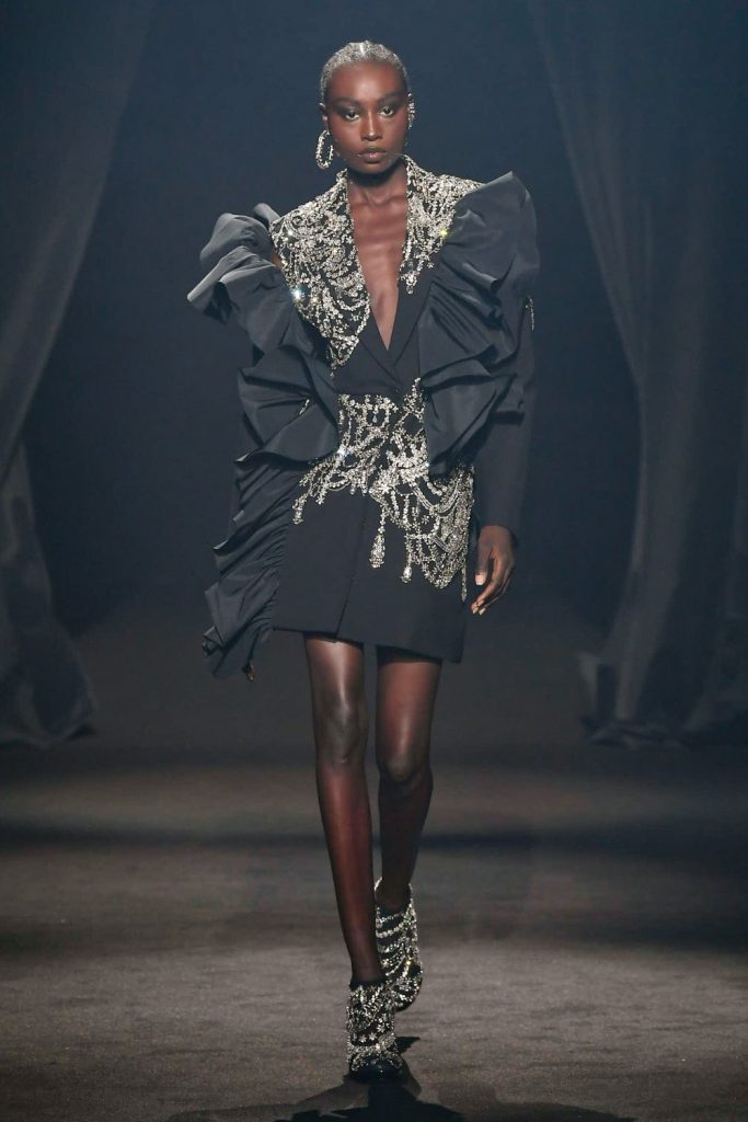 Уже, кажется, по традиции шоу разделили на две части: первое — результат работы модных Домов над коллекцией-трибьютом, вторая — сам показ AZ Factory.