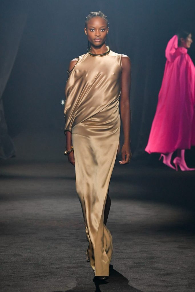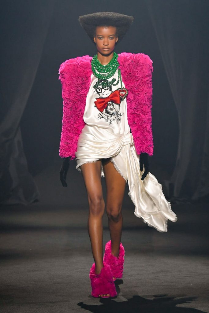 Отдельное внимание заслуживают образы с портретами дизайнера. Над ними работали Balmain, Ralph Lauren и Bruno Sialelli. А Y/Project, Versace, Valentino и Balenciaga сделали ставку на розовый — любимый цвет Альбера Эльбаза.