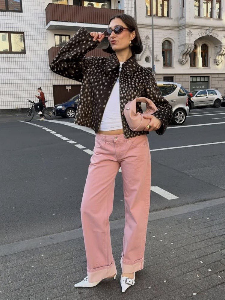 Если при слове «розовый деним» у тебя в голове всплывает что-то из 2010-х – выдыхаем. Сейчас все гораздо интереснее: пудровые, приглушенные ягодные оттенки выглядят спокойно, но не скучно.