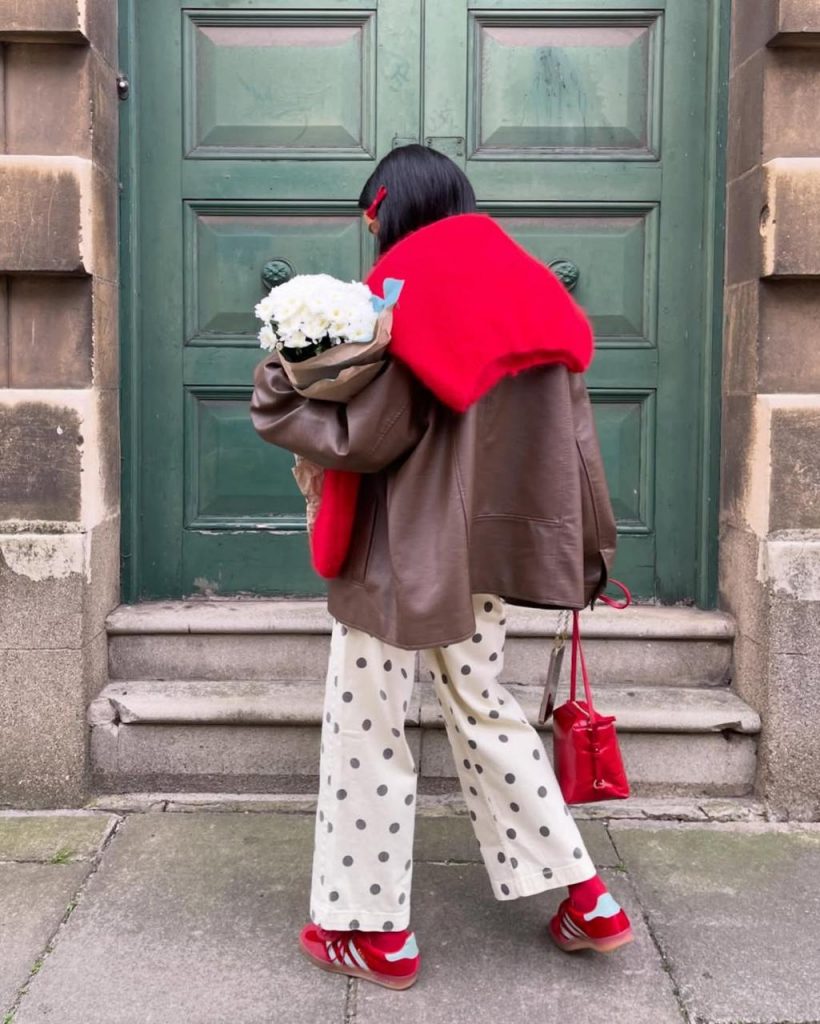 Такие джинсы легко вписываются в гардероб и неожиданно хорошо дружат с базой – серым, черным, молочным. А если хочется чуть больше акцента, можно уйти в более насыщенные оттенки вроде малинового или винного. Эти цвета точно обеспечат стильный и выразительный лук, который подойдет как для дневных прогулок, так и для вечерних выходов.