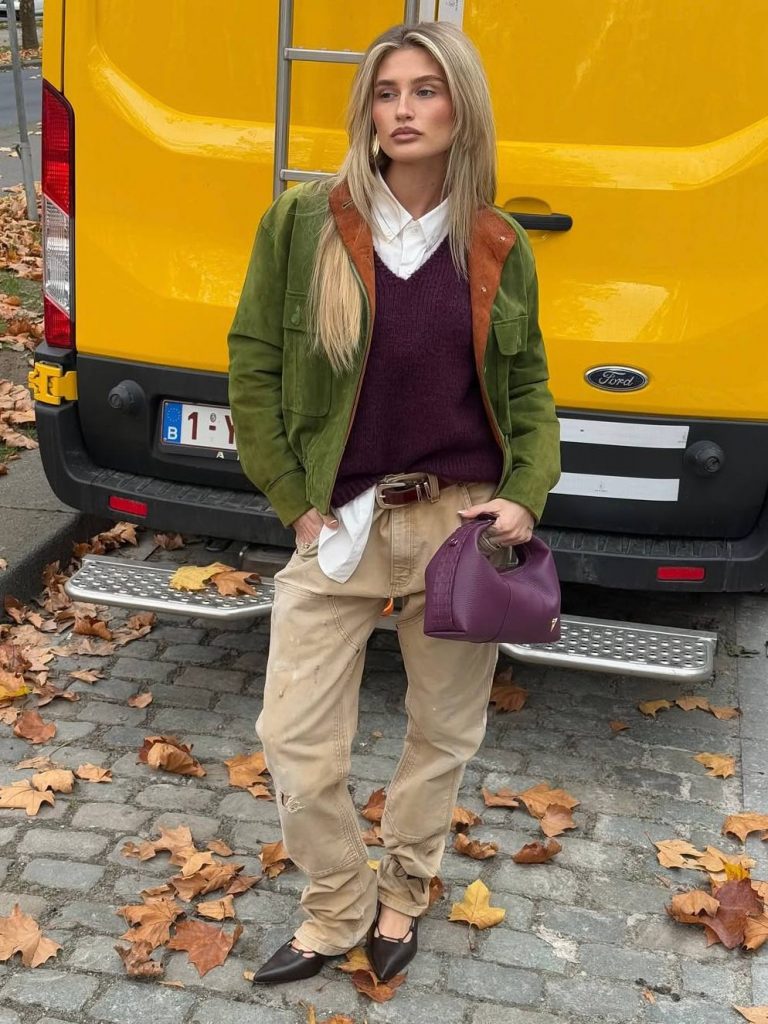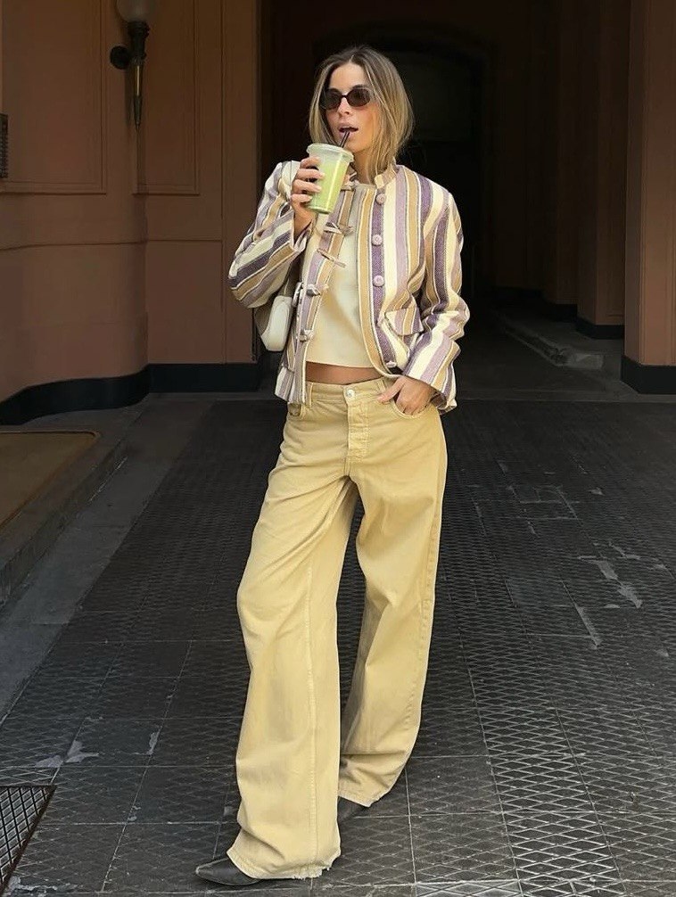 Пожалуй, самый универсальный тренд этого сезона – деним в земельных оттенках. Не стоит думать, что этот тренд подходит только тем, кто любит нейтральные и сдержанные образы. Наоборот, джинсы в глиняных, песчаных или оттенках хаки являются отличной альтернативой классическому синему дениму. Эти цвета работают как нейтральный фон, на котором легко выстраиваются стильные комбинации.