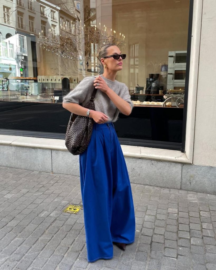 Казалось бы, синий деним – классика. Но в этом сезоне у нас новый фаворит – кобальтовый. Этот электрический, насыщенный оттенок – главный конкурент привычной нейтральной палитры. Он легко сочетается с базой, становясь главным акцентом образа.