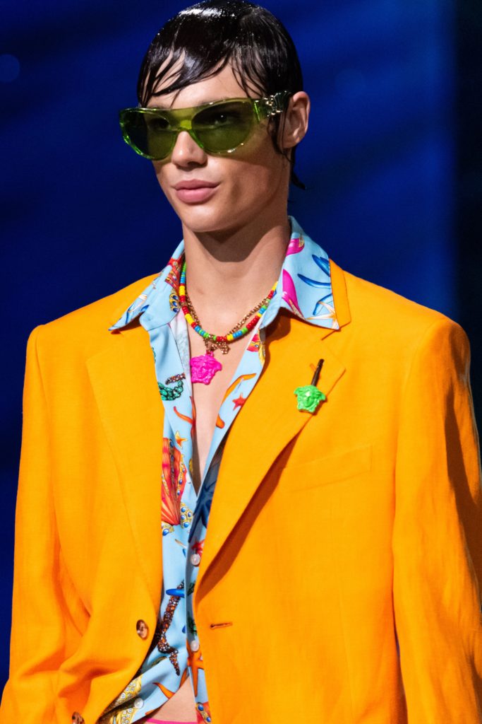 Среди других трендов и яркие цвета. Вообще, они буквально захватили все подиумы на Неделе моды: ярко-зеленое платье Bottega Veneta, розовые туфли Prada и ярко-желтое пальто Versace. Дизайнеры отошли от классического черного и сделали ставки на цвет. Отсюда и солнцезащитные очки с цветными линзами и оправами (и они претендуют на звание самых модных в этом сезоне).