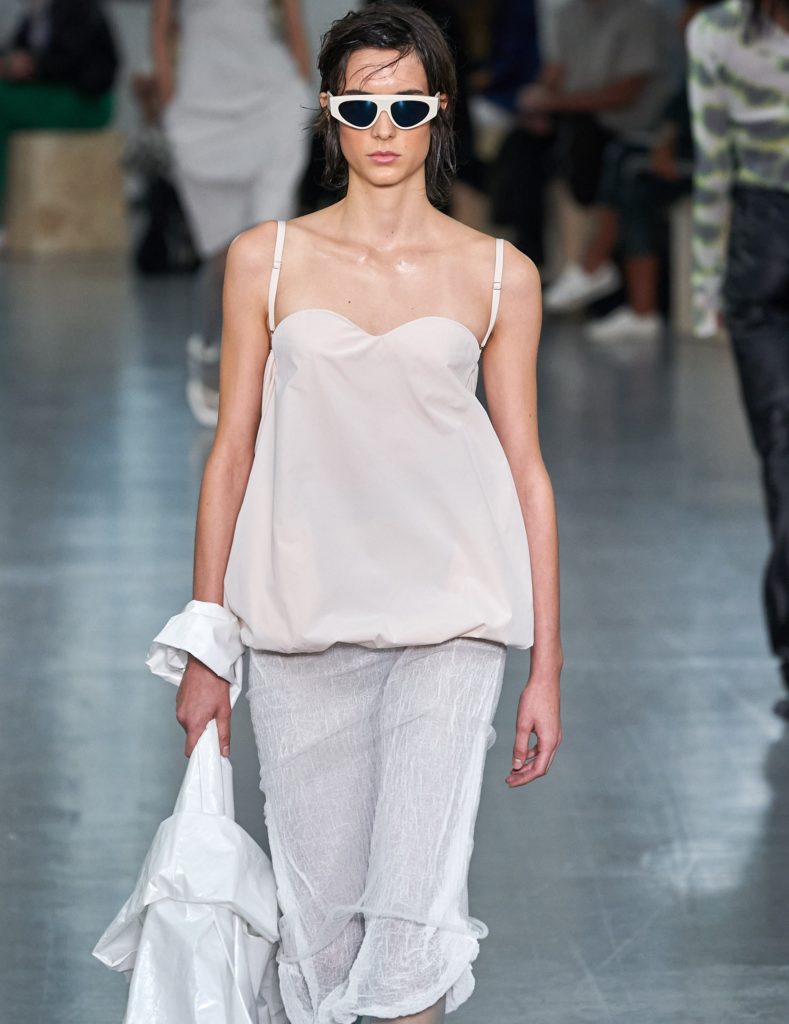 Как мы уже сказали, на смену узким очкам из 90-х пришли модели в стиле оверсайз. Выбирать можно вариант с круглой оправой, как предлагает Balenciaga, или в спортивном стиле, как в коллекции Prada.