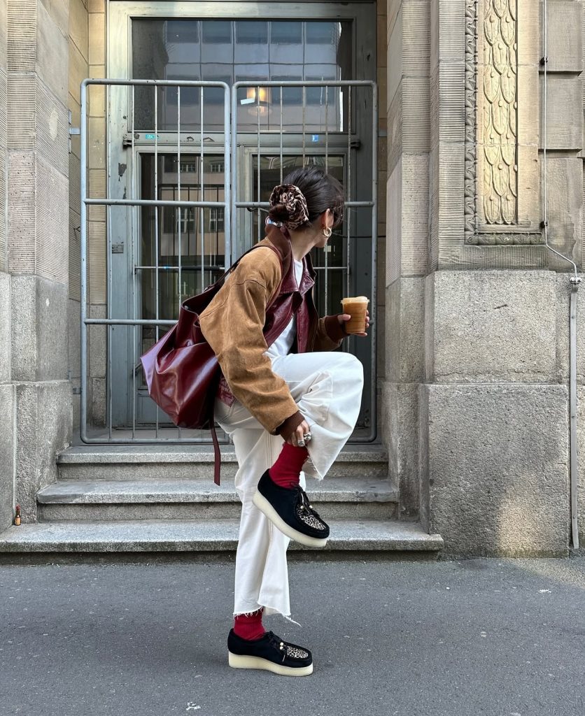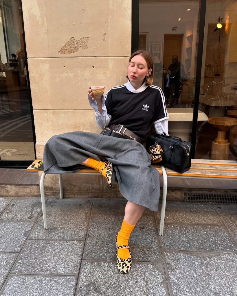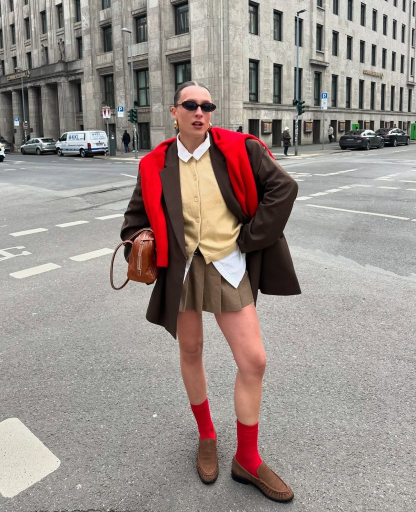 Если пару сезонов назад герои стритстайла и модные инфлюенсеры были одержимы цветными колготками, в этом году их заменили яркие носки – красные, голубые, зеленые, желтые и оранжевые. Фэшн-блогеры дополняют ими образы с мешковатыми джинсами, костюмными брюками, джортами, юбками из денима и плиссированными мини. А в качестве обуви они выбирают трендовые лоферы на тонкой подошве, полуботинки с квадратным мысом, топсайдеры и балетки. И фэшн-отдел PEOPLETALK предлагает обратить внимание на цветные носки уже сейчас, ведь с их помощью можно сделать аутфит менее базовым и серьезным. Собрали несколько идей стилизации от городских фэшиониста, которые стоит взять на заметку.