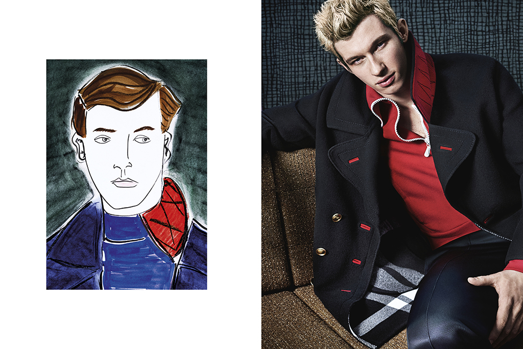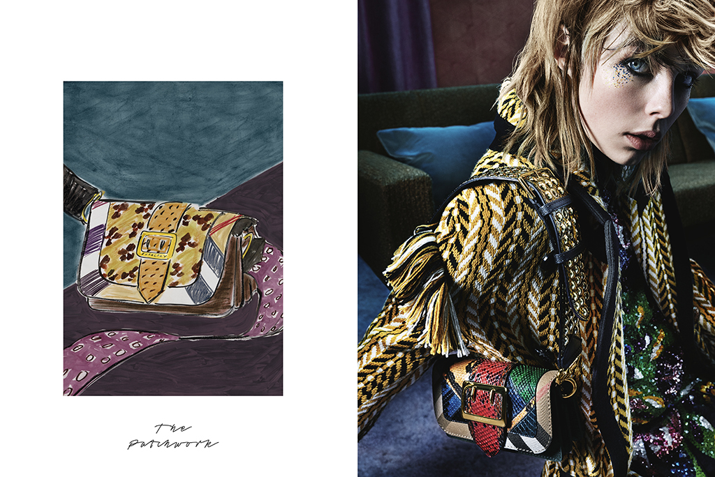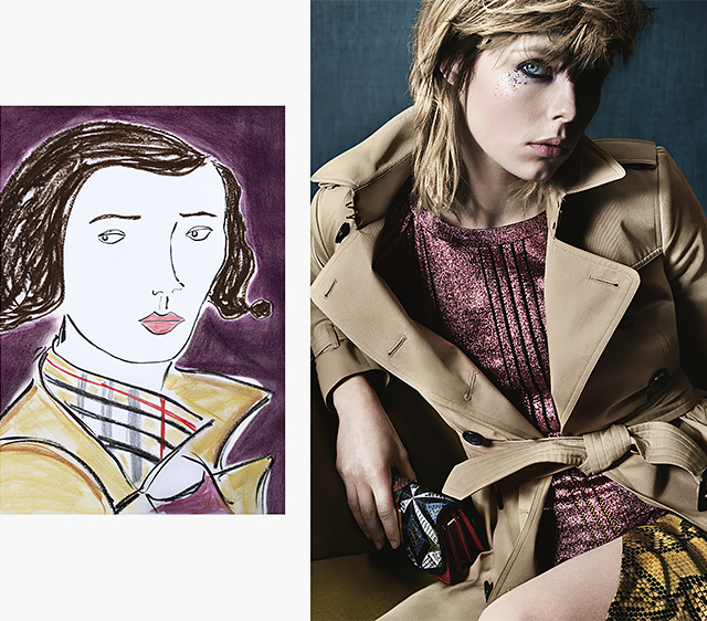 Над новой рекламной кампании фотограф Марио Тестино (61) работал с молодым художником Люком Эдвардом Холлом, который и создал рисунки специально для Burberry. Иллюстрации и фото вторят друг другу. В Instagram появился короткий мультфильм, как отрисовывали сумки Burberry, а в журналах — рекламные полосы, рисунок и фото рядом на странице