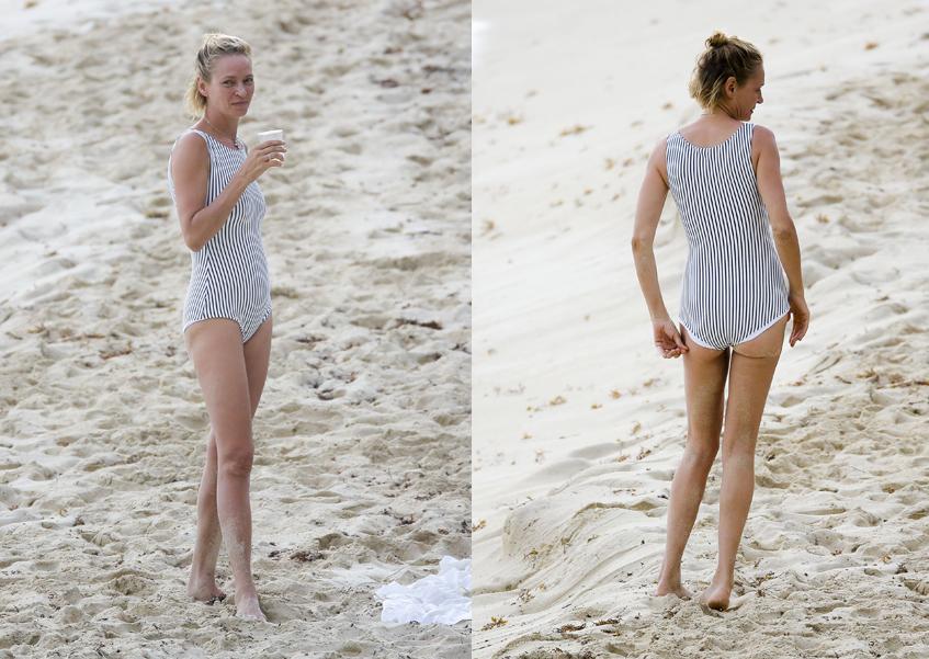 Именно там папарацци застали Уму, которая весело проводила время в компании друзей. Звезда загорала на пляже, выбрав для этого весьма необычный туалет – закрытый купальник в горизонтальную полоску, который очень сильно походил на купальный костюм из бабушкиного сундука. Такой наряд только подчеркивал фигуру сильно похудевшей звезды.