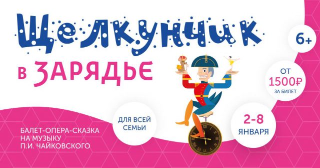 Со 2 по 8 января пройдет балет-опера-сказка «Щелкунчик в Зарядье» — очень красивое шоу, для которого художник Андрей Бартеньев создал 130 (!) костюмов. Ежедневно состоится 3 спектакля: в 12:00, 15:00 и 19:00. Билеты здесь.
