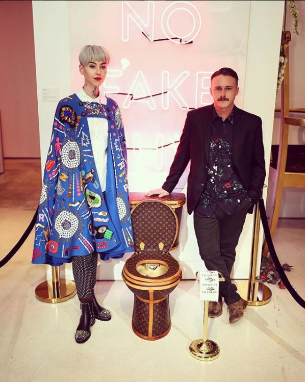 Американская художница Ильма Гор (25) создала фирменный унитаз. Чтобы обтянуть его она потратила 24 сумки Louis Vuitton (а это между прочим 25 тысяч долларов), а внутри покрыла его золотом. У девушки ушло три месяца, чтобы сотворить это произведение. Кстати аксессуар поставляется вместе с чемоданчиком.