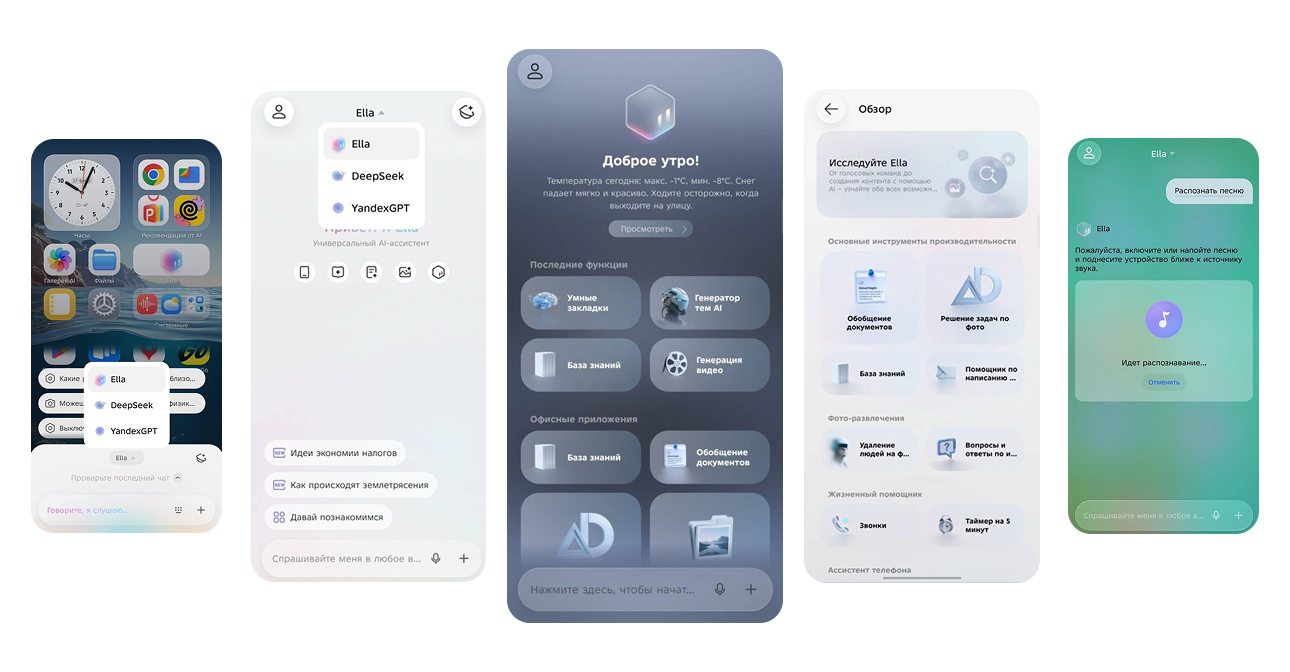 Рекомендуем обратить внимание и подружиться с ассистентом Ella. Через него можно быстро решить «бытовые» задачи: построить маршрут, заказать такси или выбрать кафе через сервисы Яндекса. И это не требует перехода между приложениями: достаточно голосового запроса, и нужный сервис запускается сразу. Ella также поможет решить множество других задач только лишь по голосовому запросу — найти песню, которая запала в душу, сгенерировать видео для блога и даже решит математическую задачу!