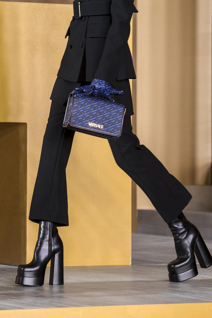 Пожалуй, самым неожиданным камбэком сезона Fall 2021 стала платформа, которая появилась в коллекциях ведущих мировых брендов. Prada сделали ставку на модель с принтом, а Giambattista Valli на вариант в идеальном белом цвете. Но все-таки самую популярную пару создала Донателла Версаче. Черные сапоги на платформе уже возглавили вишлисты всех инфлюенсеров (и мы поддерживаем их восторг).