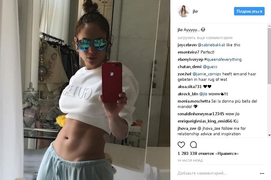 Между прочим, фото собрало уже 1,2 миллиона лайков и 15 тысяч комментариев. Только вот некоторые фанаты обвиняют Джей Ло в использовании фотошопа: «А под топом дырка в теле. Не ожидал», «Ну зачем? У тебя ведь и так прекрасное тело», «Кажется, кто-то укусил тебя… куда пропала часть тела?» Дело в том, талия звезды выглядит странно — как-будто чего-то не хватает. Кажется, что звезда хотела уменьшить себе талию, но случайно переборщила с ретушью.