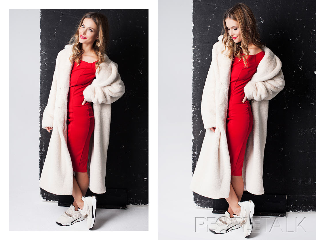 Главная героиня сериала «Тест на беременность» делится с нами: «Одежду я выбираю по настроению, но есть одно правило – образ всегда должен быть женственным». Только рецепт у актрисы свой: чем меньше – тем лучше. Потому к платью с шубой она надевает не туфли, а кроссовки. И выглядит невероятно женственно.