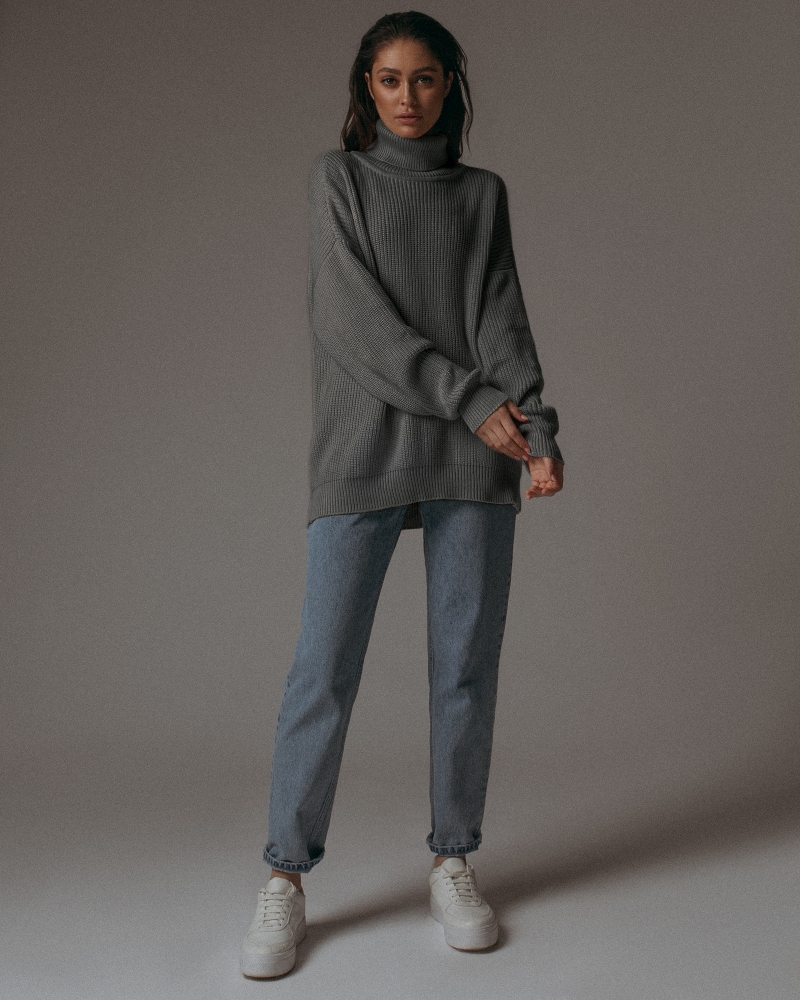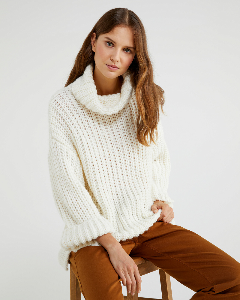 Среди наших фаворитов свитера с широким горлом и модели оверсайз. И, конечно, не забываем про крупную вязку. В таком свитере ты точно не замёрзнешь.